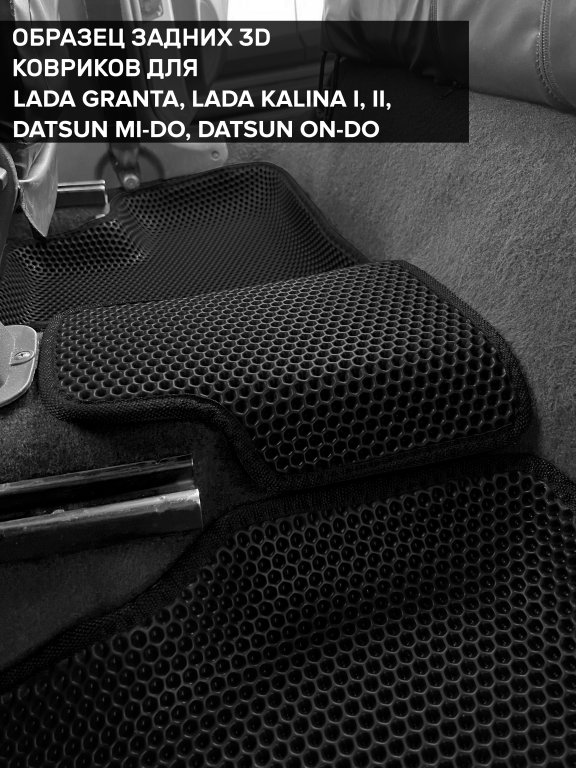 Автомобильные 3д коврики для Lada Kalina II (2013-2018) в салон авто и багажник сделаны из инновационного полимерного материала EVA, изысканная структура в виде ячеек не дает воде, пыли и снегу разлетаться по салону машины и багажнику. 3д коврики зафиксированы на полу определенными клипсами, соответствующими Lada Kalina II (2013-2018), и не двигаются в процессе езды.
